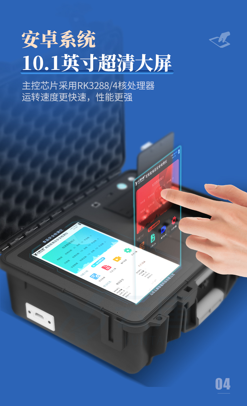 1、儀器采用10.1英寸液晶觸摸屏顯,搭配運行安卓智能操作系統(tǒng),主控芯片采用ARM Cortex-A7,RK3288/4核處理器,主頻1.88Ghz,運轉(zhuǎn)速度更快速,性能更強。